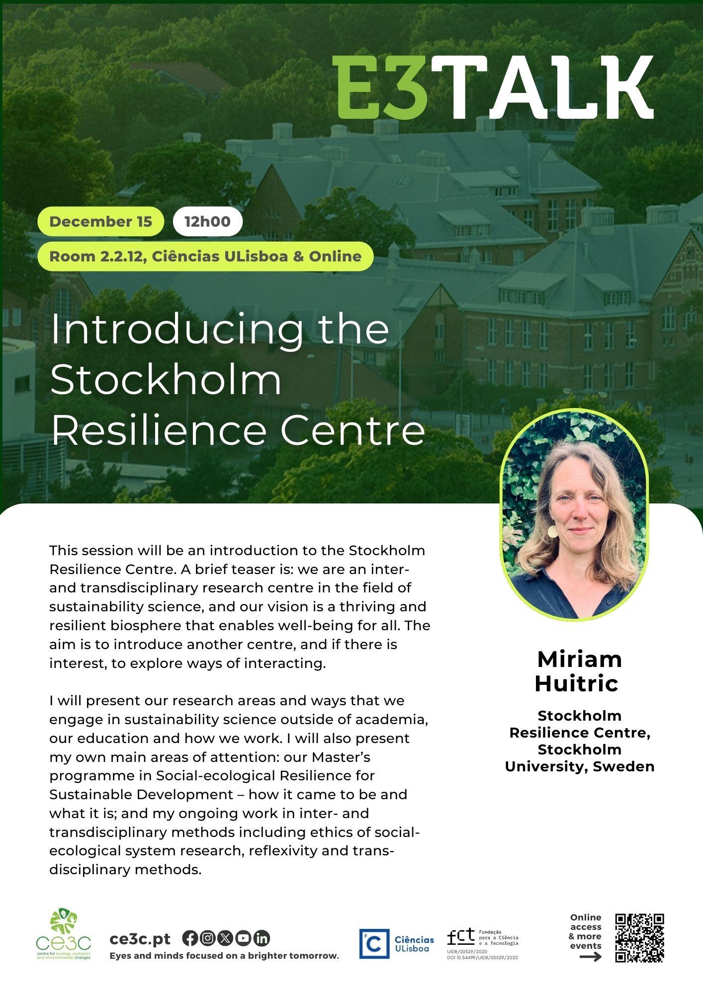 This session will be an introduction to the Stockholm Resilience Centre. A brief teaser is: we are an inter- and transdisciplinary research centre in the field of sustainability science, and our vision is a thriving and resilient biosphere that enables well-being for all. The aim is to introduce another centre, and if there is interest, to explore ways of interacting.