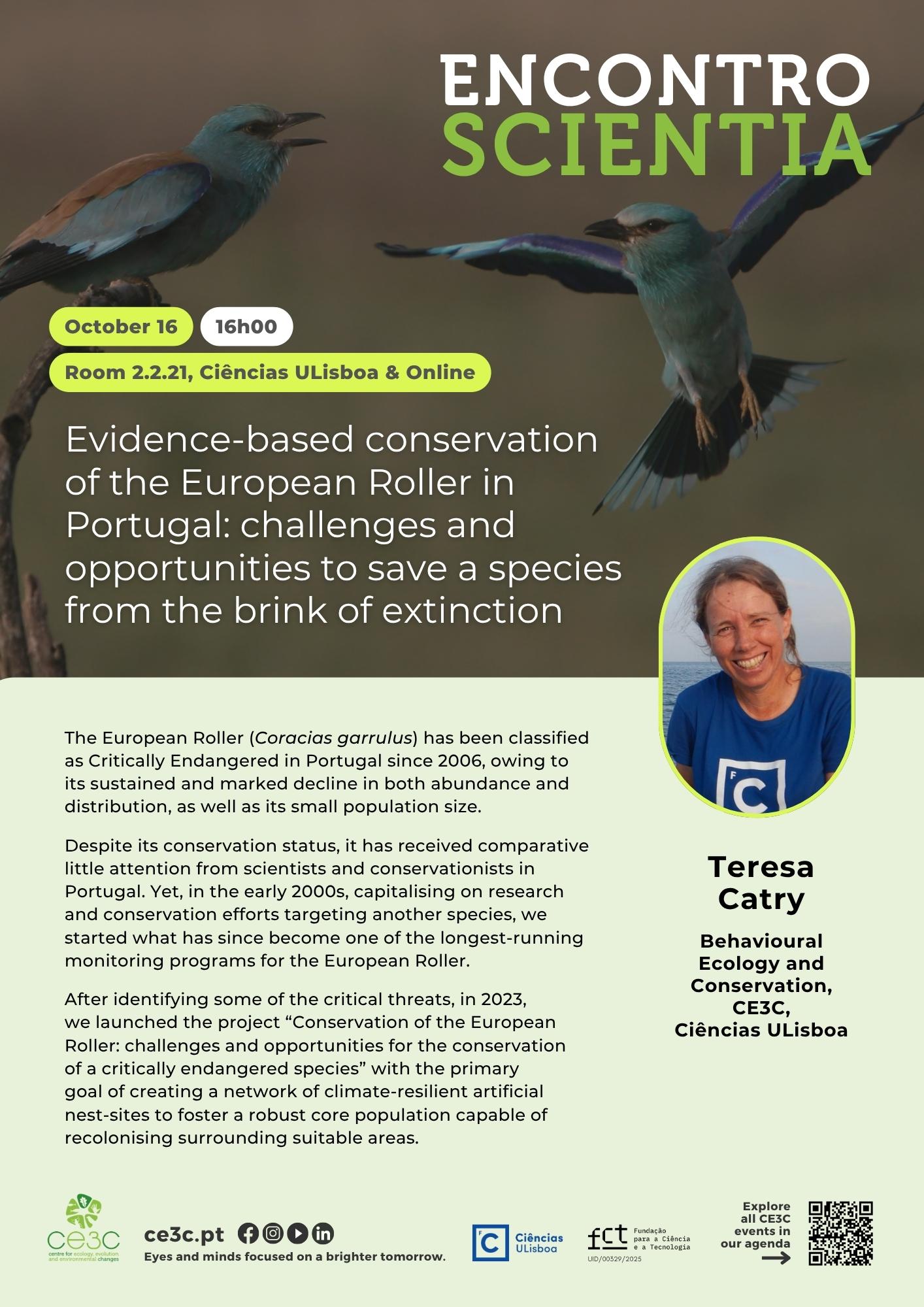 The European Roller (Coracias garrulus) has been classified as Critically Endangered in Portugal since 2006, owing to its sustained and marked decline in both abundance and distribution, as well as its small population size. Despite its conservation status, it has received comparative little attention from scientists and conservationists in Portugal. Yet, in the early 2000s, capitalising on research and conservation efforts targeting another species, we started what has since become one of the longest-running monitoring programs for the European Roller. After identifying some of the critical threats, in 2023, we launched the project “Conservation of the European Roller: challenges and opportunities for the conservation of a critically endangered species” with the primary goal of creating a network of climate-resilient artificial nest-sites to foster a robust core population capable of recolonising surrounding suitable areas.