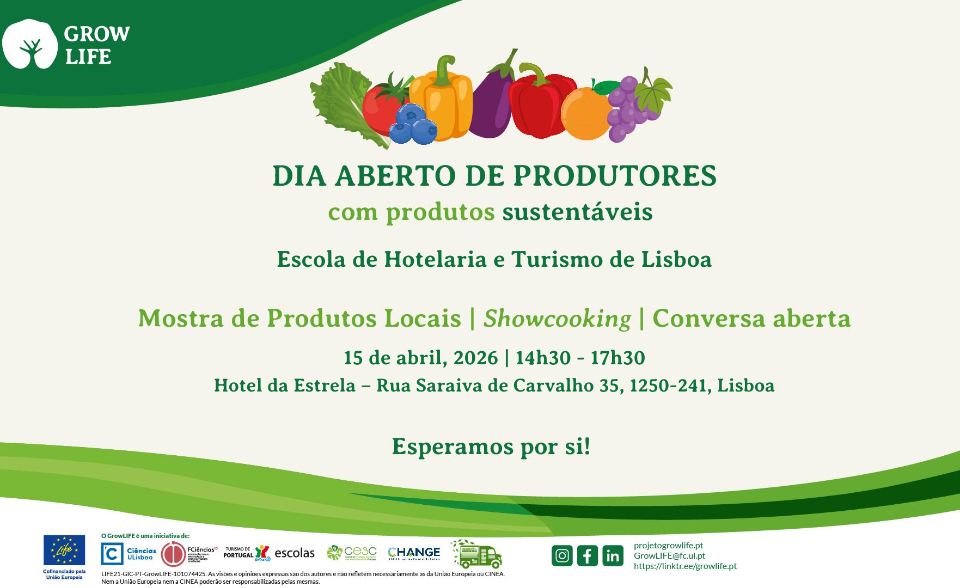 No próximo dia 15 de abril, o Hotel da Estrela, contíguo à Escola de Hotelaria e Turismo de Lisboa, recebe o Dia Aberto de Produtores, uma iniciativa do projeto GrowLIFE dedicada à valorização dos produtos locais, das práticas sustentáveis e da ligação entre produtores, escola e comunidade.